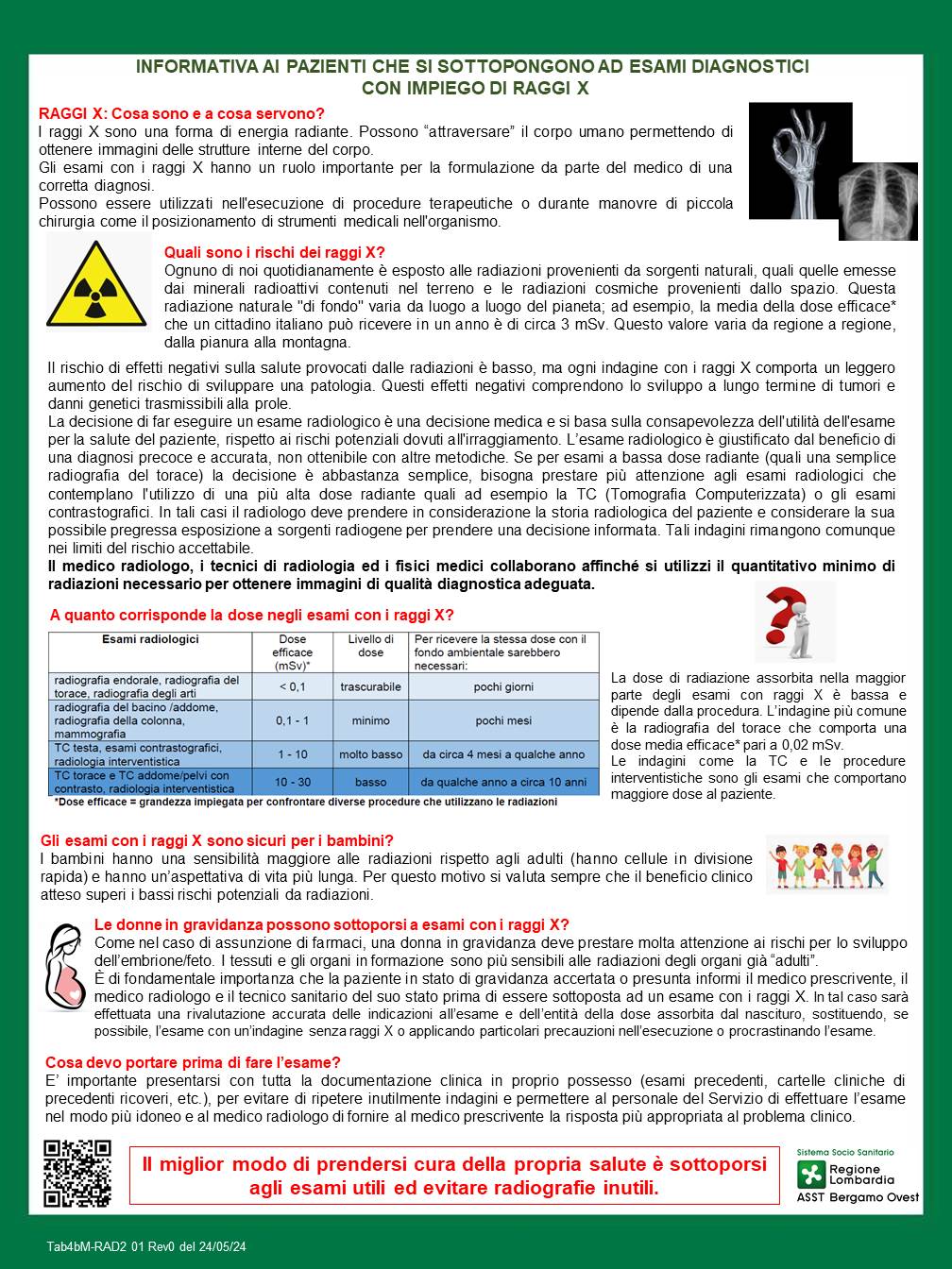 Si raccomanda di prendere accurata visione delle informative riguardanti gli esami di diagnostica per immagini, in modo particolare gli esami che prevedono l'utilizzo di mezzo di contrasto sia iodato sia paramagnetico.