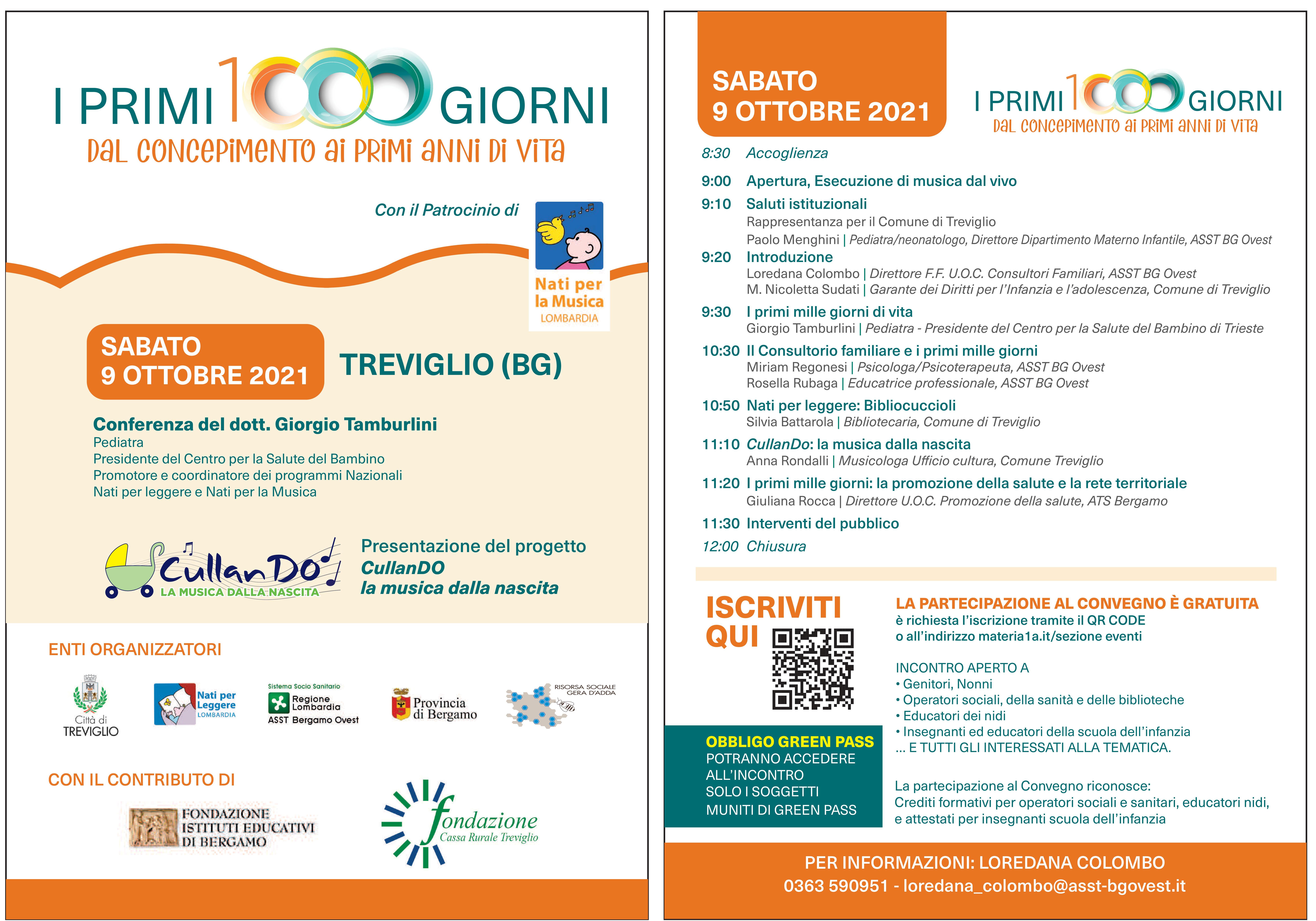 "I primi 1000 giorni dal concepimento di primi anni di vita" è il titolo del convegno che si terrà al teatro TNT di Treviglio, piazza Garibaldi, sabato 9 ottobre a partire dalle 8.30.