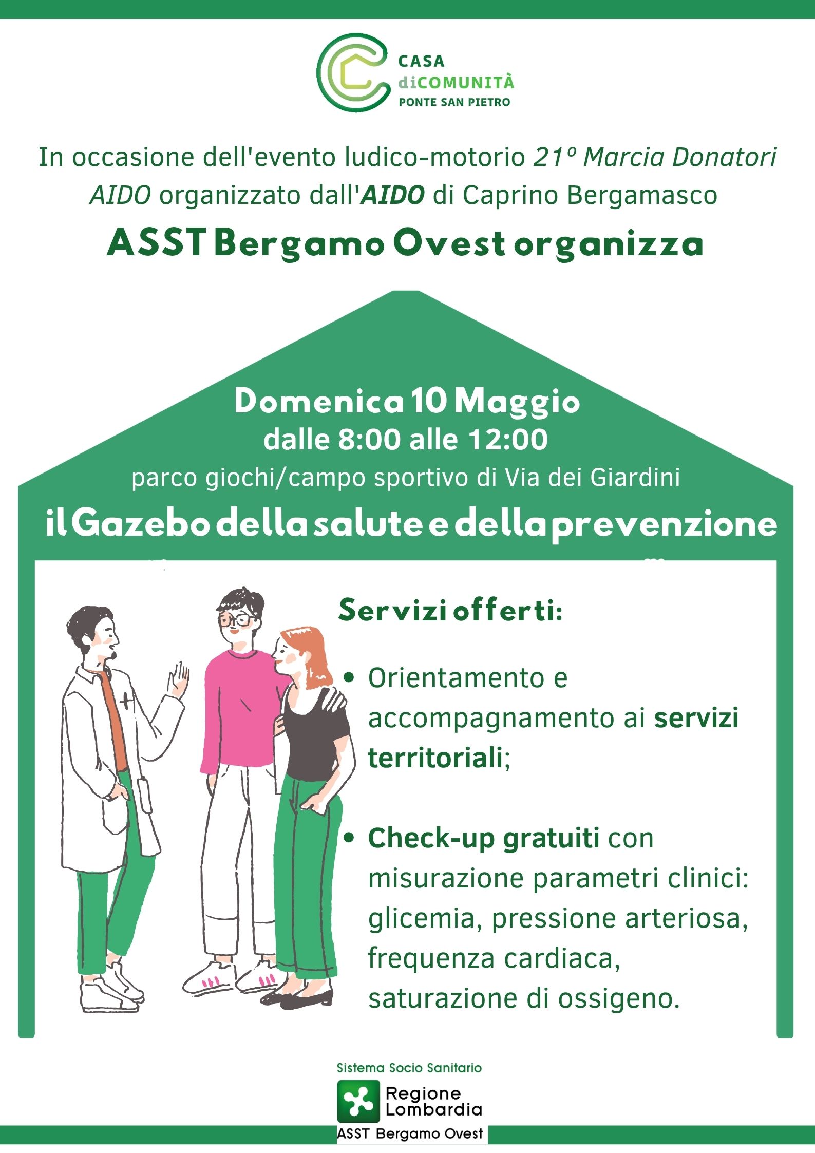 In occasione della 21ª Marcia Donatori AIDO, la Casa di Comunità di Ponte San Pietro (Distretto Isola e Valle San Martino) dell’ASST Bergamo Ovest promuove una mattinata dedicata al benessere e alla prevenzione sul territorio.